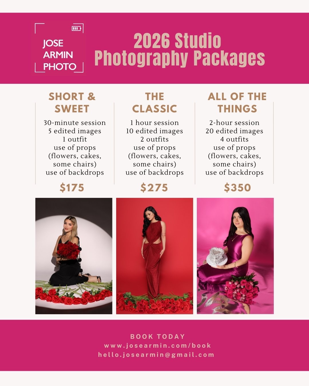 2026 PACKAGES FOR STUDIO PHOTO SHOOT: